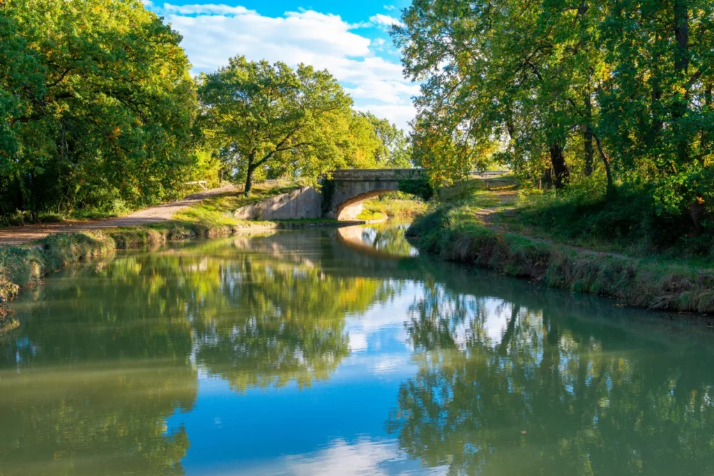 Le canal est l’une des plus belles promenades en amoureux à Toulouse, notamment parce qu’il offre une sensation très rare en centre-ville : celle de la nature qui domine. Les arbres filtrent la lumière. Le bruit urbain s’efface. Le rythme ralentit.